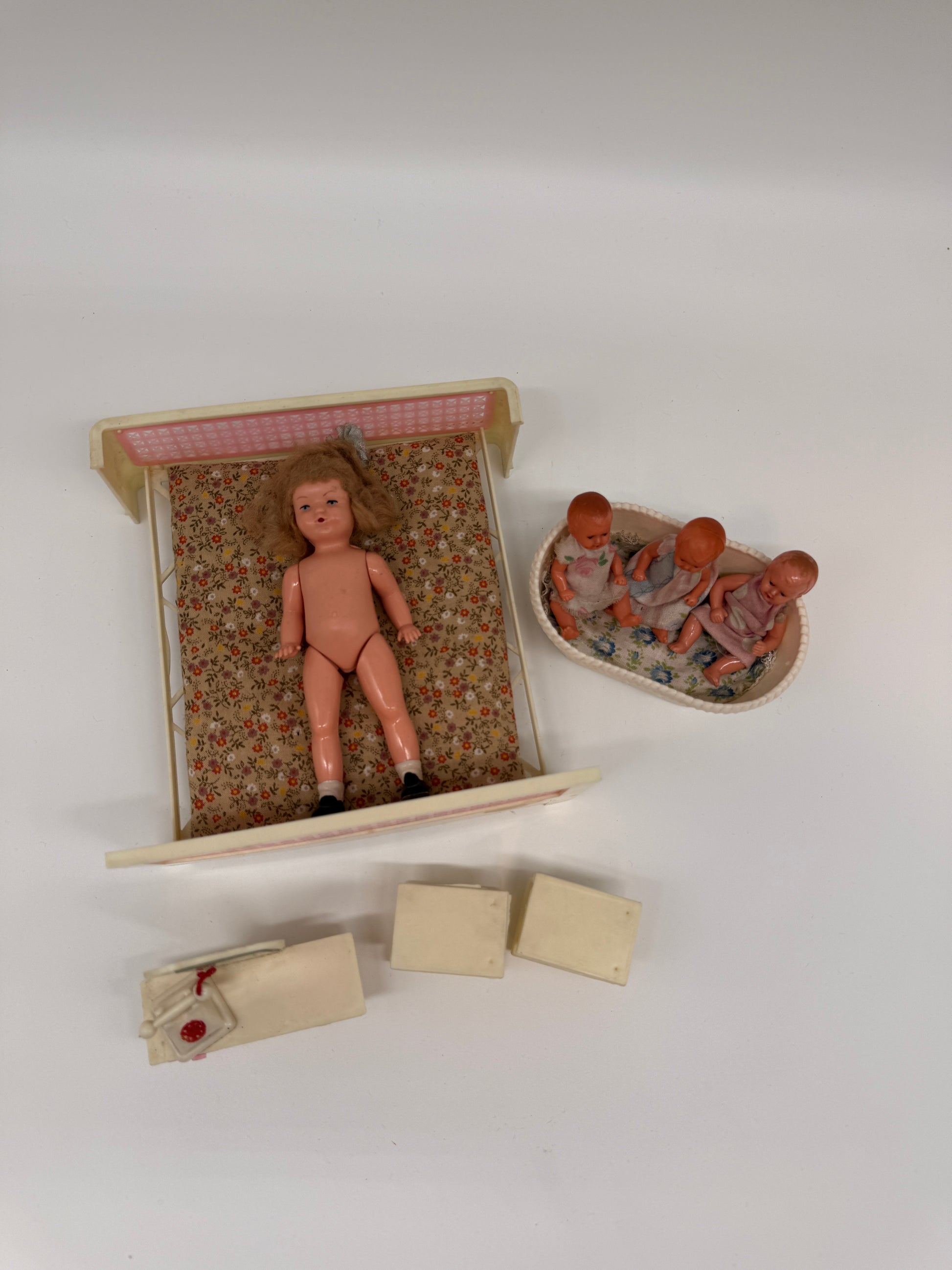Vintage Puppen-Spielset aus den 50er Jahren – nostalgisches Puppenhaus Zubehör